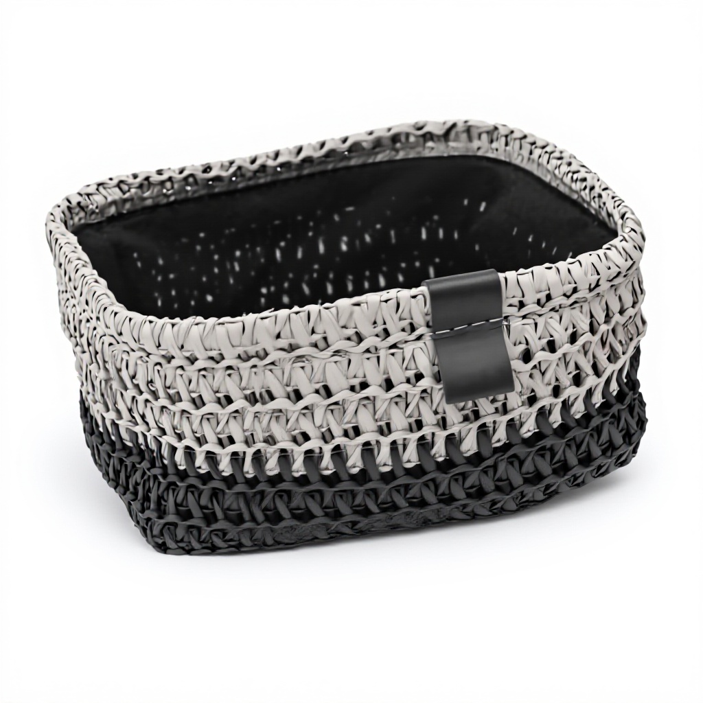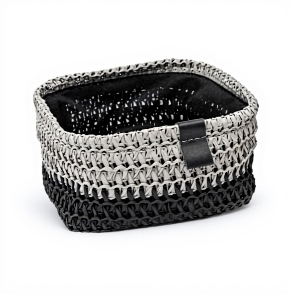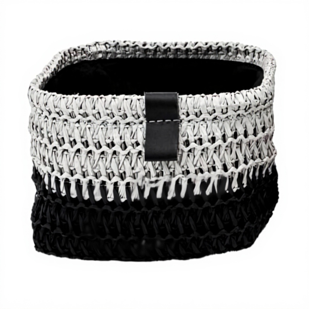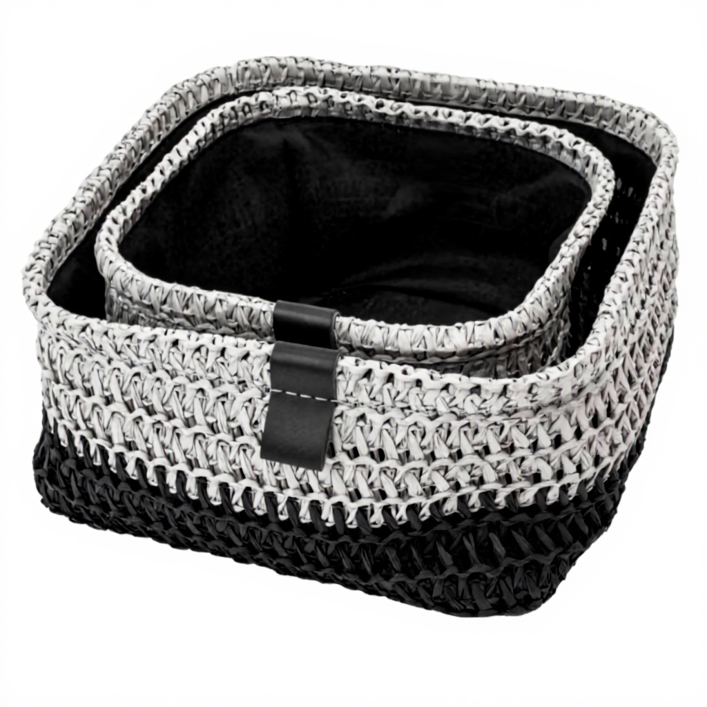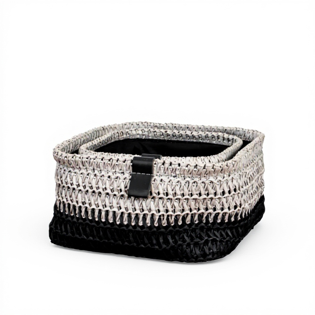 I cestini JVL Kenzi presentano una texture intricata che crea una superficie tattile e dimensionale, offrendo una sensazione artigianale. I dettagli in ecopelle cucita aggiungono un tocco di raffinatezza, mentre le bande bicolore contribuiscono a un design contemporaneo che si adatta a molti interni moderni.